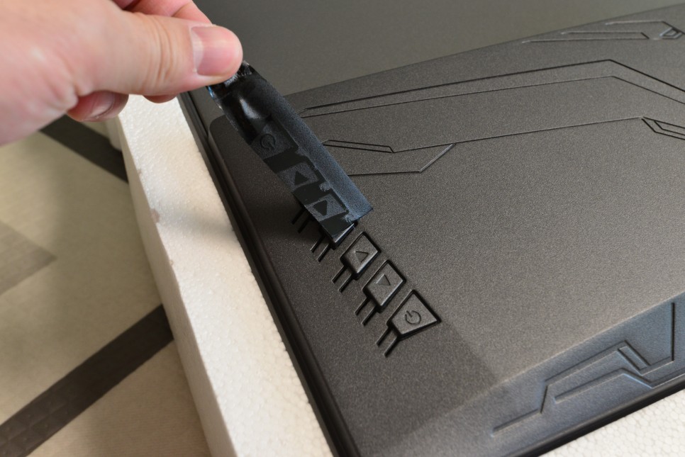 모니터의 뒷면은 사이버펑크한 디자인이 음각되어있고,